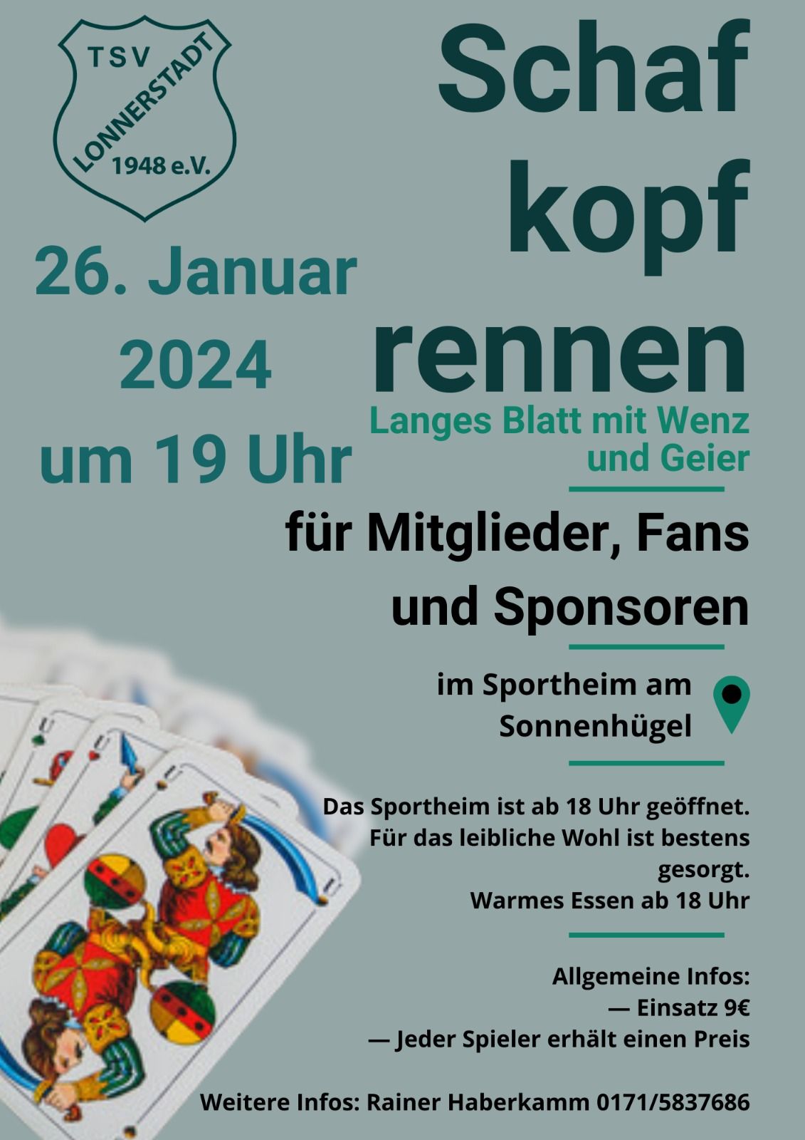 Schafkopfrennen für Mitglieder, Fans und Gönner am 26.1.2024
