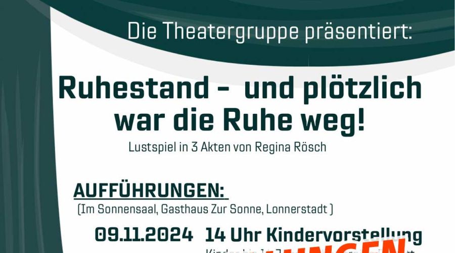 Lustspiel in drei Akten Aufführungen im Sonnensaal, Gasthaus Zur Sonne in Lonnerstadt: 9.11.2024, 14 Uhr: Kindervorstellung (Kinder bis 14 Jahren hab…